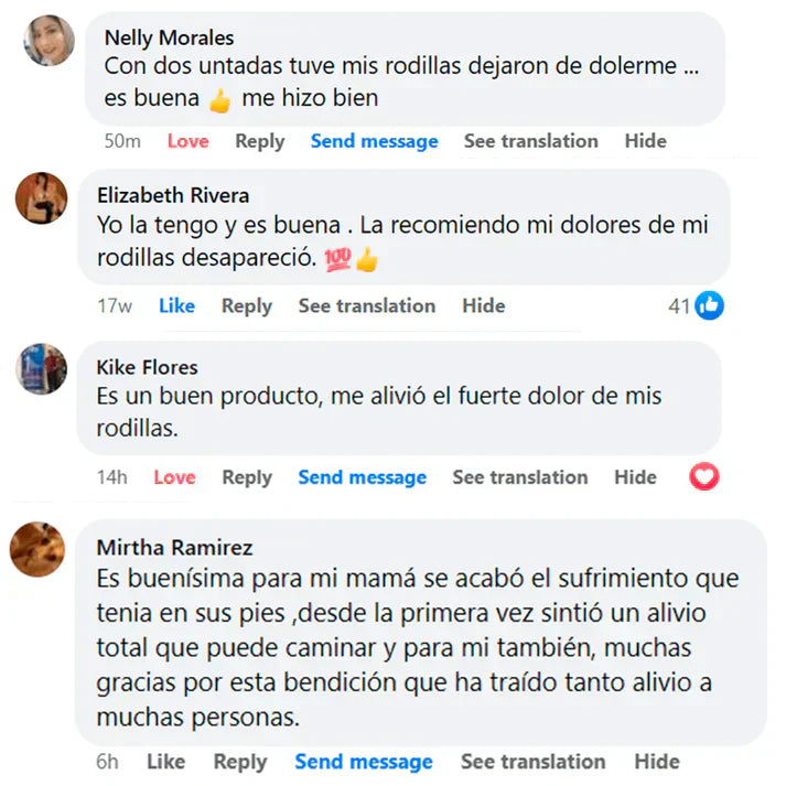 Jennifer Gonzalez:"Después de años de sufrir artritis reumatoide en mis manos, estoy encantada de descubrir que tratarla es tan simple y económico. Ha sido un gran alivio poder encontrar una forma efectiva de controlar mi condición y ha me ha dado una nueva sensación de esperanza y libertad".